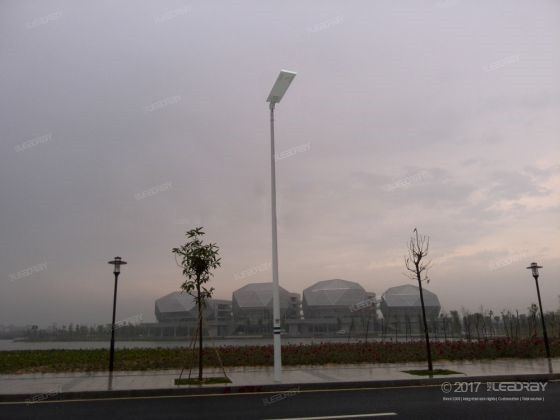 高亮度20W太阳能路灯安装在户外河滨路6米高的灯杆上,请联系我们了解项目和产品详情